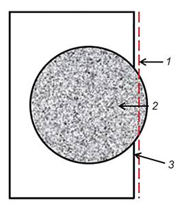 А.3 Методом мокрого распиливания обрезают образцы вдоль секущей линии (или хорды) так, чтобы между частью формы для установки образца и разрезанным торцом оставался зазор, показанный на рисунке А.1.