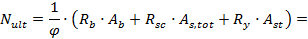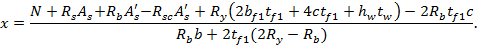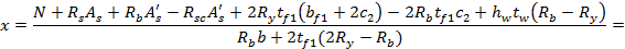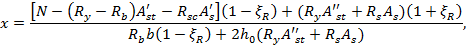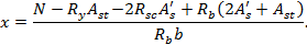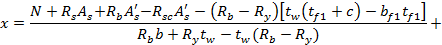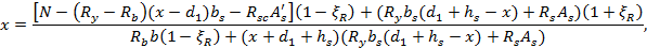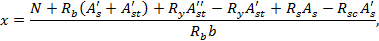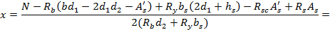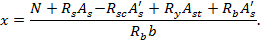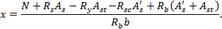 N = Rb(b·d1 + 2d2(x - d1) - A's) + Rybs(x - d1) - Rybs(hs - (x - d1) + RscA's - RsAs,
