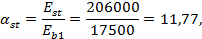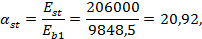 Определим коэффициенты приведения к бетону для жесткой и гибкой арматуры по формуле (Г.18) СП 266.1325800.2016:
