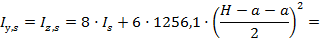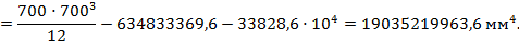 = 40346704,4 + 1231361,3·11,77 + 609434,3·11,43 = 61805661 мм4,