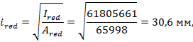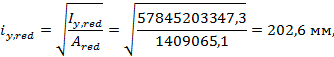 Радиус инерции приведенного сечения определяется по СП 266.1325800.2016 (формуле (Г.15))