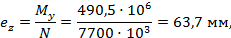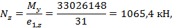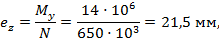 ez1 = е0η + (h0 - h/2) = 21,5·1,066 + 83,05 - 75 = 31,0 мм,