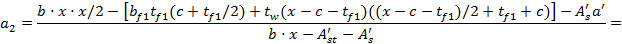 Определяем относительную высоту сжатой зоны. Влиянием продольной арматуры на конечный результат пренебрежем, т.к. ее площадь мала по отношению к площади жесткой арматуры. Расстояние до центра тяжести растянутого волокна стального сечения:
