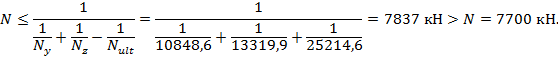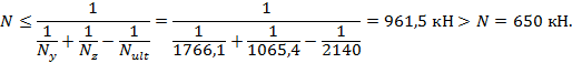 Так как сечение симметричное, предельный момент Mz,ult = My,ult.