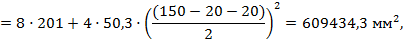 = (150·150 - 3844 - 100,6·2) + 3844·11,77 + 100,6·2·11,43 =