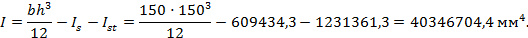 I - момент инерции бетонной части относительно центра тяжести приведенного сечения (с учетом вытеснения бетона арматурой)