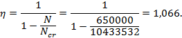 Коэффициент, учитывающий влияние продольного изгиба элемента на его несущую способность η, и определяемый по СП 266.1325800.2016 (подпункт 7.1.2.5)
