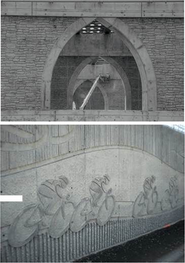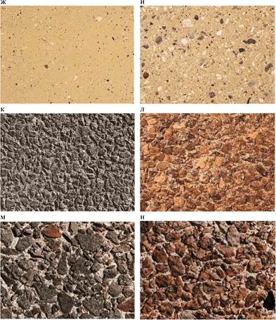 Обнажение текстуры заполнителя при невыраженном рельефе; матирование поверхности; имитация приемов и эффекта камнеобработки |
