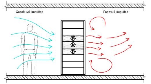 Рисунок 8.6 - Схема серверного зала с горизонтальным движением воздушных масс