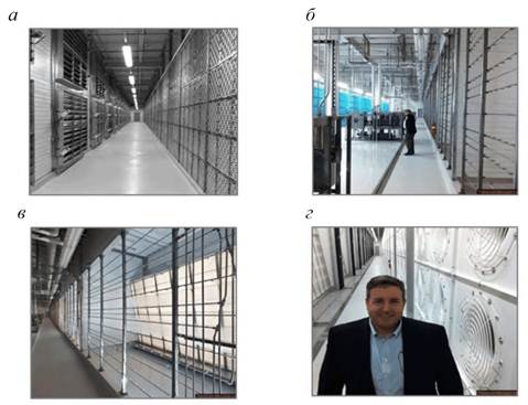 В корпусе 1, выполненном из сэндвич-панелей, размещены две стойки 4, в которых установлено серверное оборудование на 14 кВт.