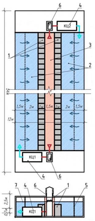 7 - подвесной потолок; КЦ 1, КЦ 2 - центральный кондиционер