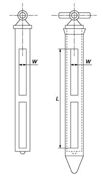 Пробоотборная трубка состоит из двух металлических труб, вставляемых одна в другую. Трубки на протяжении рабочей длины (L) имеют отверстия прямоугольной формы (не менее двух). Рабочая длина L должна составлять не менее 600 мм. Ширина прямоугольных отверстий (W) должна быть не менее 24 мм. Толщина стенок труб не должна допускать их деформаций в процессе отбора проб песка. При отборе пробоотборную трубку с закрытыми отверстиями вводят в материал, далее проворачивают внутреннюю трубу отборника несколько раз, добиваясь ее заполнения.