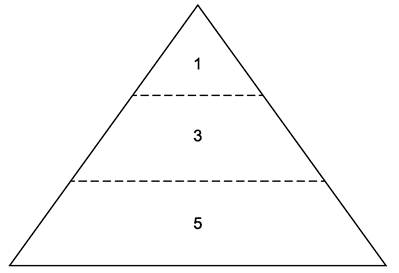 6.4.5 В случае, когда нет возможности применения специализированной техники, допускается проводить отбор точечных проб песка с помощью пробоотборной трубки, копья, лопаты и пробоотборного листа. Отбор точечных проб из штабеля необходимо производить из верхней, средней и нижней части в соотношении 1:3:5 по количеству проб, как показано на рисунке 7.