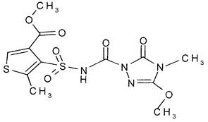 Название действующего вещества по ИЮПАК: 3-тиофенкарбоновая кислота, 4-[[[(4,5-дигидро-3-метокси-4-метил-5-оксо-1Н-1,2,4-триазол-1-ил)карбонил]амино]сульфонил]-5-метил, метиловый эфир.