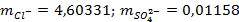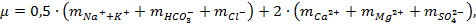 2.3. По формуле (10) п. 8.2.3 рассчитывается ионная сила µ = 0,5(3,87459 + 0,00547 + 4,60331) + 2(0,24343 + 0,13524 + 0,01158) = 5,0222