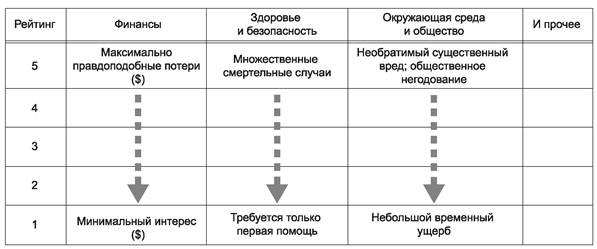 Матрица может быть построена так, чтобы придавать дополнительный вес последствиям (как показано на рисунке Б.19) или вероятности, либо она может быть симметричной, в зависимости от ее применения.