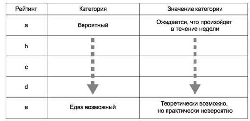 Примечание - Шкала рейтинга вероятности может иметь более или менее пяти уровней, а значения рейтинга могут быть указаны в виде слов или букв.
