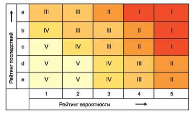 Результатом является отображение, которое иллюстрирует относительную вероятность, последствия и уровень разных рисков, а также рейтинг значимости каждого отдельного риска.