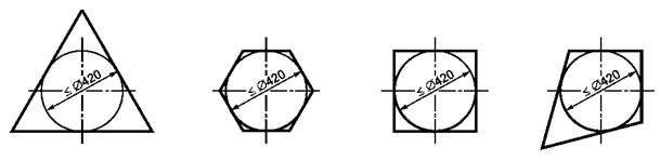 Если трехмерная пространственная игровая сеть представляет собой конструкцию, состоящую из плоских сетей [см. рисунок 1c)], расположенных на расстоянии более 1000 мм друг от друга по вертикали, то диаметр самой большой окружности, которую можно вписать в любую из ячеек сети, в ненагруженном состоянии должен составлять не более 420 мм [см. рисунок 4].