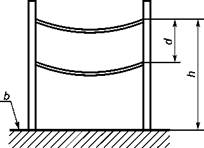 a - размер ячейки, который меньше диаметра цилиндрического шаблона (см. 4.1); b - ударопоглощающая поверхность; d - расстояние между сетками, максимально равное 1,8 м для ячеек размерами менее 420 мм×420 мм и максимально равное 1,0 м для ячеек размерами более 420×420 мм; h - высота свободного падения |