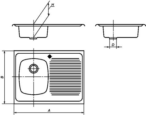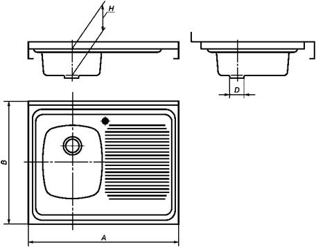 Рисунок 5 - Мойка из нержавеющей стали с одной чашей, встраиваемая (тип МНВ)