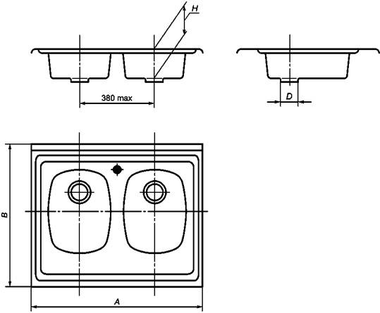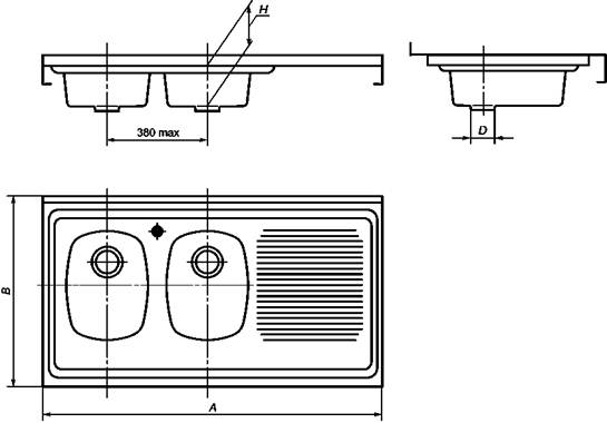Рисунок 3 - Мойка из нержавеющей стали с двумя чашами, накладная (тип МН2)