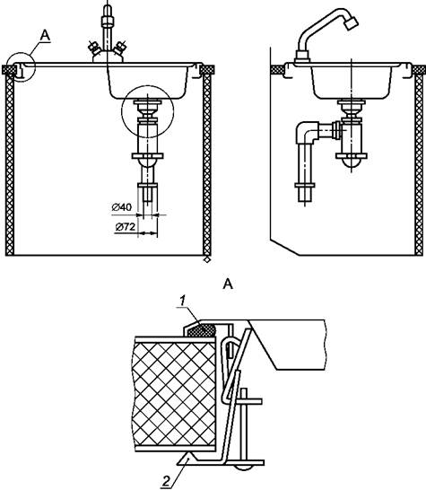 9.3 Мойки должны быть прочно закреплены на подстолье. Рекомендуемые монтажные схемы установки моек на подстолье приведены в приложении А.