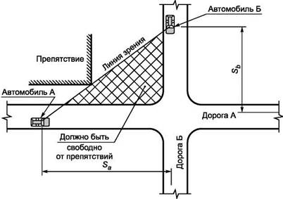 - расстояния и условия видимости, соответствующие расчетной, но не менее разрешенной, скорости движения на участке дороги, где расположено пересечение;