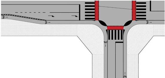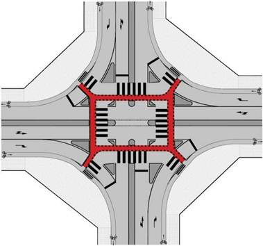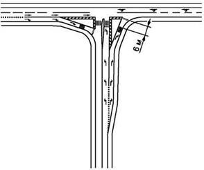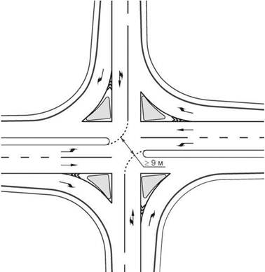 - минимизацию площади пересечения и времени, требуемого для освобождения автомобилями участка конфликта пересечения или примыкания;