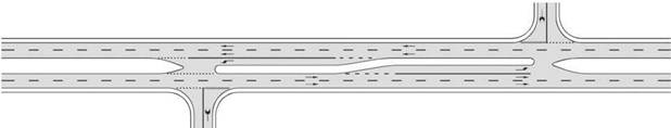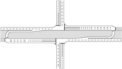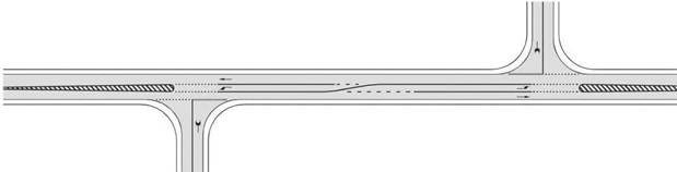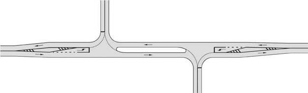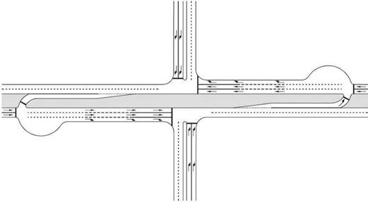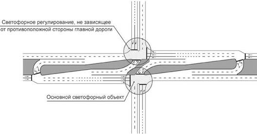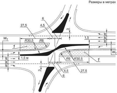 - пересечение в одном уровне с отнесенными на разворот левыми поворотами (согласно 6.6, рисунки 15 - 19);