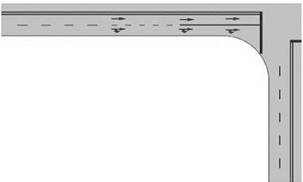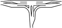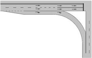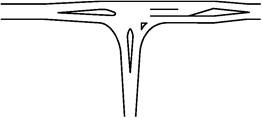 3.11 примыкание в одном уровне: Пересечение в одном уровне, имеющее три подхода к пересечению, где к одной дороге присоединяется в одном уровне другая дорога, не имеющая прямого продолжения и прерывающаяся в месте соединения.