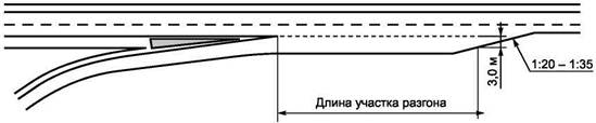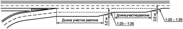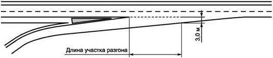 3.9 полоса разгона: Переходно-скоростная полоса, служащая для облегчения автомобилям вхождения в основной поток после пересечения или примыкания с выравниванием скорости движения с автомобилями основного потока.