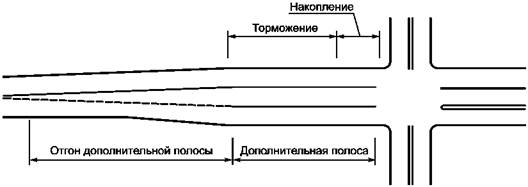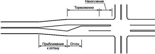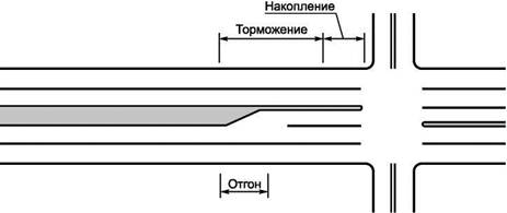 3.10 полоса торможения: Переходно-скоростная полоса, служащая для снижения скорости перед пересечением или примыканием выходящими из основного потока автомобилям без помех основному движению.