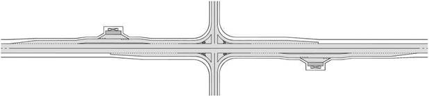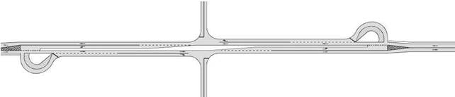 - кольцевое пересечение (следует проектировать в соответствии с требованиями к кольцевым пересечениям).