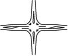 пересечение в одном уровне: Вид пересечения автомобильных дорог, в котором встречающиеся дороги и все специальные устройства для перевода с одной дороги на другую расположены в одном уровне.