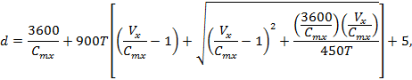 Расстояние видимости до светофора должно быть не менее, чем сумма минимального расстояния видимости для остановки Sост плюс расстояние от стоп-линии светофора до самого дальнего светофора.