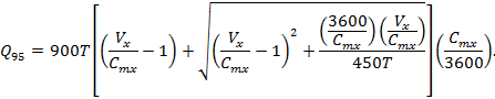 Среднюю длину очереди Q приведенных автомобилей вычисляют по формуле