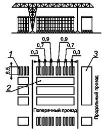1 - прогон; 2 - перевод; 3 - опора Рисунок А.12 - Фундамент штабеля |