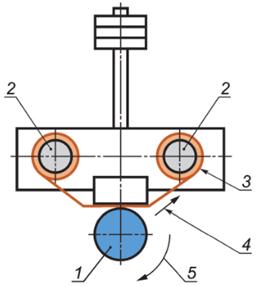 2 - ролики лентопротяжного механизма со шкуркой; 3 - шкурка; 4