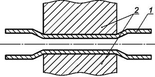 Рисунок 4 - Вид сбоку образца рукава пластин испытательной машины при проверке стойкости к деформации сжатия рукавов |