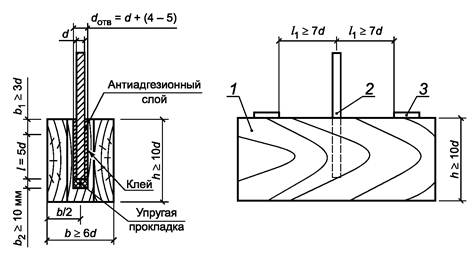 5.1.1 Соединения элементов деревянных конструкций с использованием вклеенных стержней, согласно ГОСТ 33082, следует относить к соединениям 1-й группы.