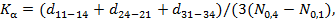 d11-14, d24-21 и d31-34 - величина деформации вклеенного стержня на трех этапах при изменении нагрузки от 0,1Nmax до 0,4Nmax, мм;