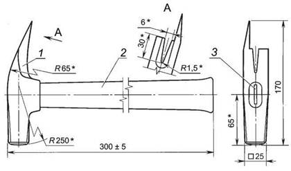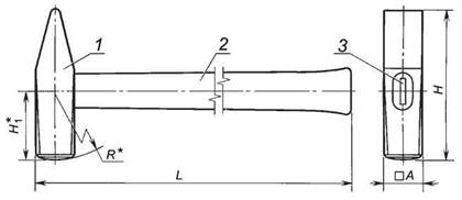 1 - корпус; 2 - ручка; 3 - клин Рисунок 2 - Молотки плотничные, тип МПЛ. Исполнение 1 |