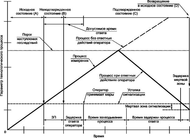 3.1.20 задержка включения аварийной сигнализации (alarm on-delay): Время, в течение которого показания технологического замера остаются в состоянии, вызывающем аварийный сигнал, до момента оповещения об аварии.