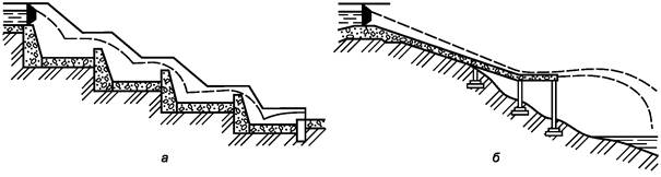 Е.4.3 Наледные пояса целесообразно применять для задержания наледей, возникающих на небольших и периодически действующих водотоках. Они представляют собой участки расширяемого русла, покрываемые каменной отмосткой или бетонными плитами. Размеры поясов следует назначать на основе результатов теплотехнических расчетов.