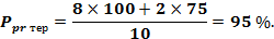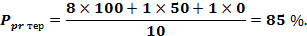3.1.9 оправдываемость прогноза метеорологической величины: Степень соответствия диапазона (градации) прогнозируемого значения метеорологической величины (с учетом допуска) фактически наблюдавшемуся значению метеорологической величины, выраженная в процентах.