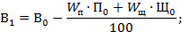 Пщ - процентное содержание мелкого заполнителя в крупном заполнителе, %; Ц0, Щ1 и В1 - расход мелкого заполнителя, крупного заполнителя и воды соответственно в скорректированном по влажности рабочем составе, кг/м3;