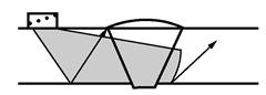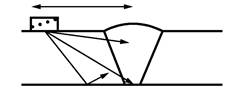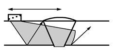 - зафиксировать все локальные участки ультразвуковых изображений несплошностей СС, амплитуда сигналов которых не менее контрольного уровня, полученного при настройке чувствительности дефектоскопа. Для каждого участка необходимо определить значение угла ввода, для которого сигнал имеет наибольшую амплитуду;