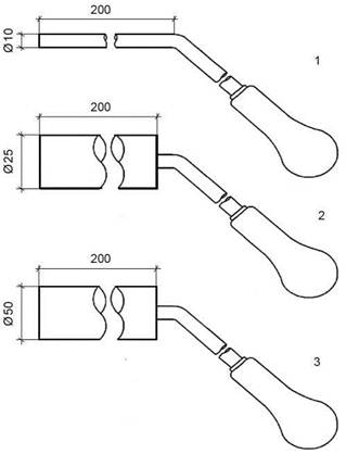 Стамеска, длина (350 ± 25) мм, ширина шлица (30 ± 5) мм |