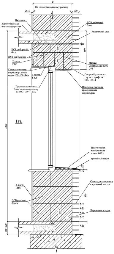 3.13 облицовочные слои: Наружные (из штукатурки, кирпичной кладки или декоративных фасадных плит) или внутренние (из штукатурки или ГВЛ, или ГВЛВ) конструктивные слои наружных стен (с основным утепляющим слоем из полистиролбетонных изделий), выполняющие огнезащитные, а также (со стороны фасада) архитектурные функции.